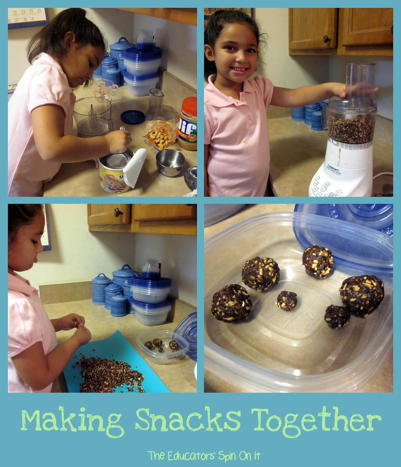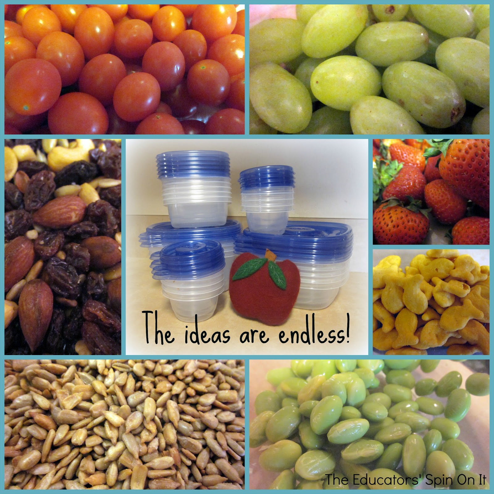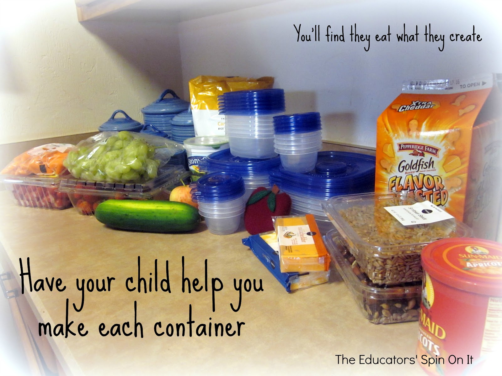 We use a similar system for my kindergarten sidekick. We homeschool, but he is fiercely independent and loves to help prepare a week's worth of snacks in those rectangular Glad containers and then load his snack bin every evening for the next day.