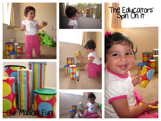 My daughter was so excited when she woke up from her nap to play with these today. She took lots of her time shaking them and hitting them but she also stacked them up and arranged them all over the room. So much FUN!
