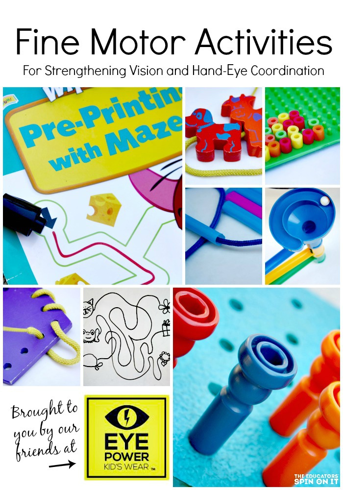 Young children need many opportunities to develop their vision and hand-eye coordination. Here is a collection of our personal household favorites of fine motor activities for kids.