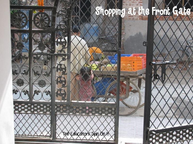 Each morning you awake to the sounds of vendors passing by with the various items that they are selling from their carts. We would go out and buy any fresh produce we wanted for our meals that day or the next day. Here’s a picture of my daughter buying bananas with her Dadi Ji from the vendor.