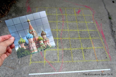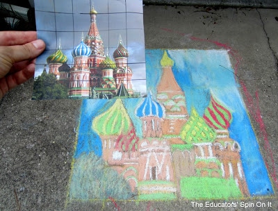 Learning with art and math about the buildings of Russia. This sidewalk chalk activity uses a printed picture and grid to create art!