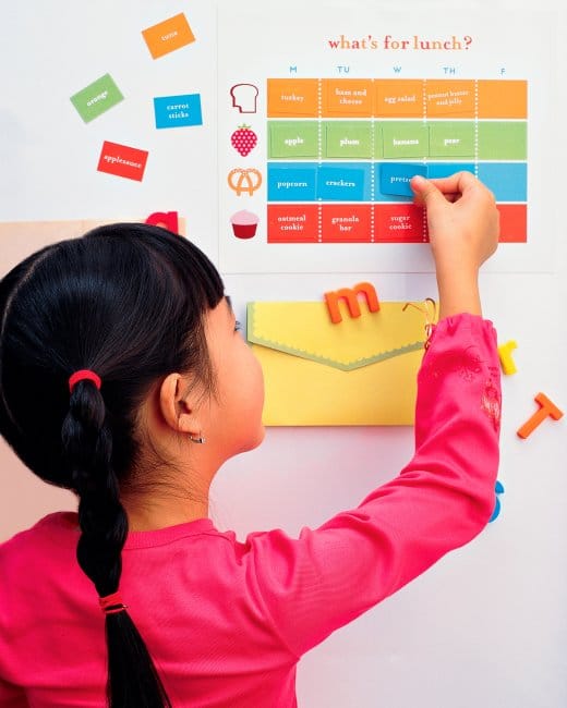 Using a Printable Magnetic Lunch Chart from Martha Stewart can make meal planning easier. Getting kids involved can encourage better eaters.