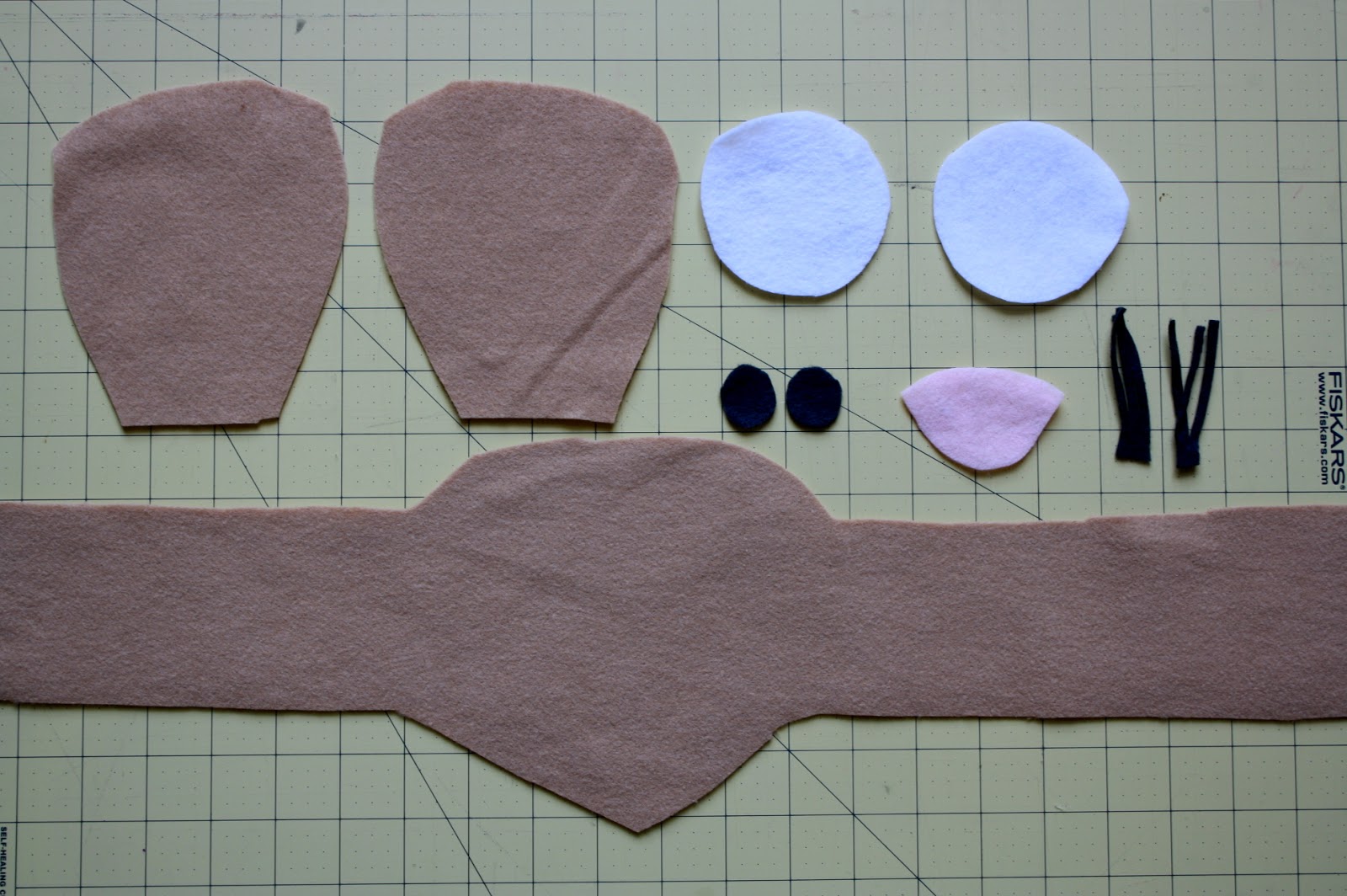 - Brown, white, pink, and black felt