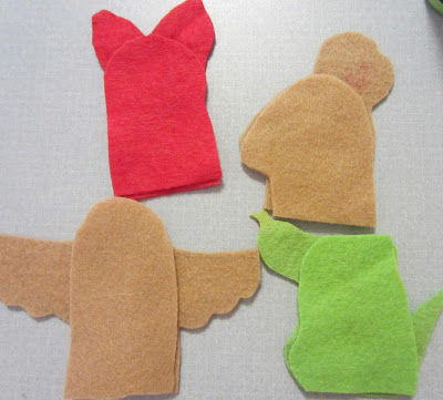 Since we don’t have a ton of storage space in the house, I decided that some cute little felt finger puppets would fit nicely into a pocket on the apron and thus – the Gruffalo character finger puppets were born!