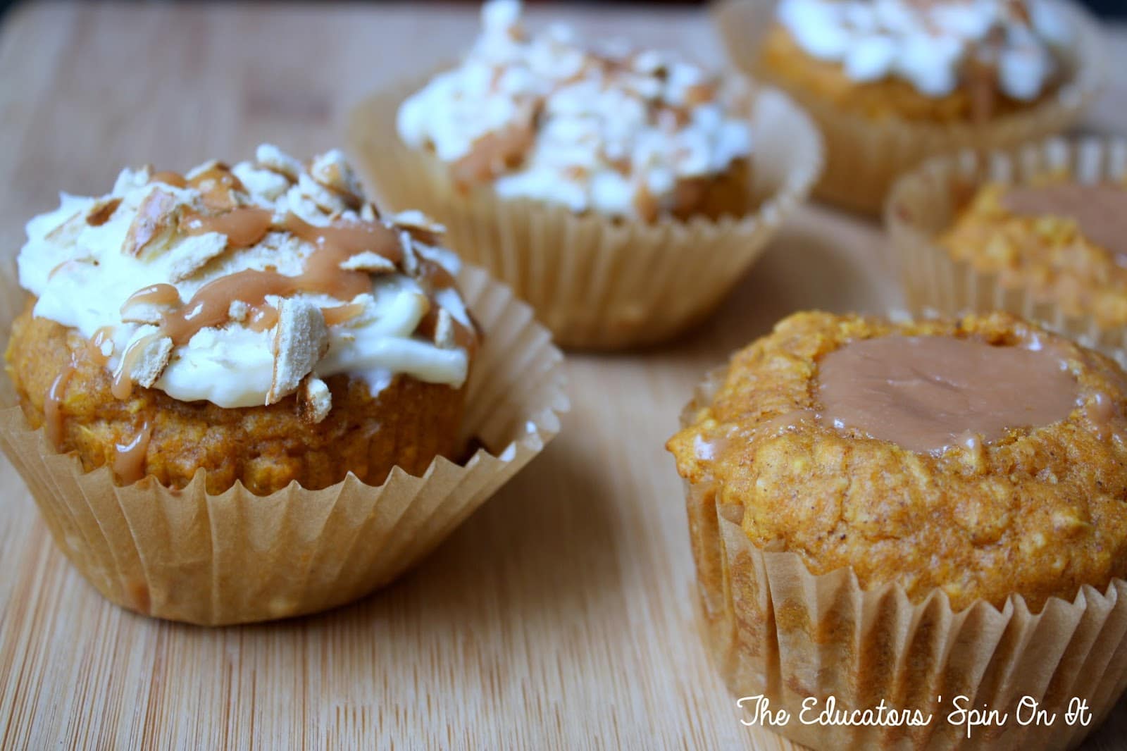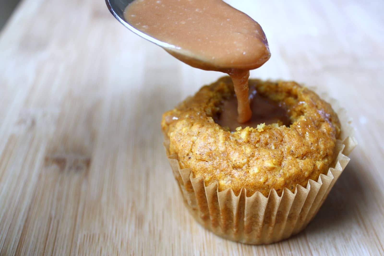These pumpkin muffins are a healthier afternoon snack option. Without the caramel, they freeze well for quick on-the-go snacks too. Add the salted caramel, cream cheese frosting, and pretzel topping to make them a perfect appetizer or treat for your fall get-together!