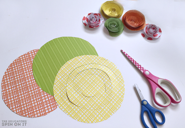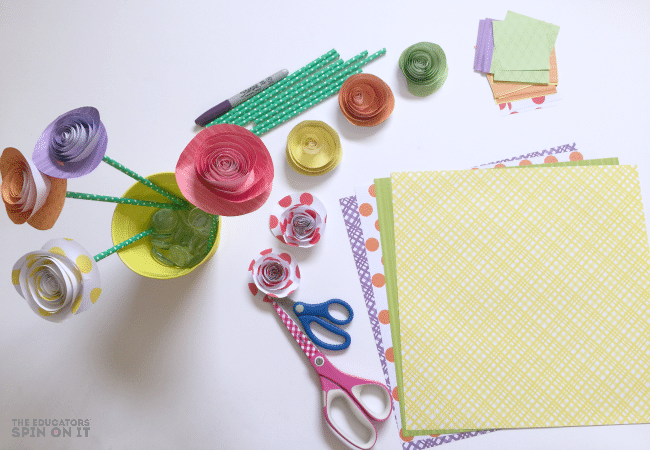 Once you make your first few flowers it gets pretty easy. Making paper flowers is something I’ve done with years with my kids and even when I was a kid. If you need more help with making your flowers search out on Pinterest Spiral Paper Flower Tutorial.