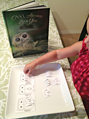 To make your very own Owl you can {Click HERE} We had tons of fun spelling our family names together. My littlest was working on one to one and letter recognition while the older one was working on some 2nd grade sight words to get her ready for school soon!