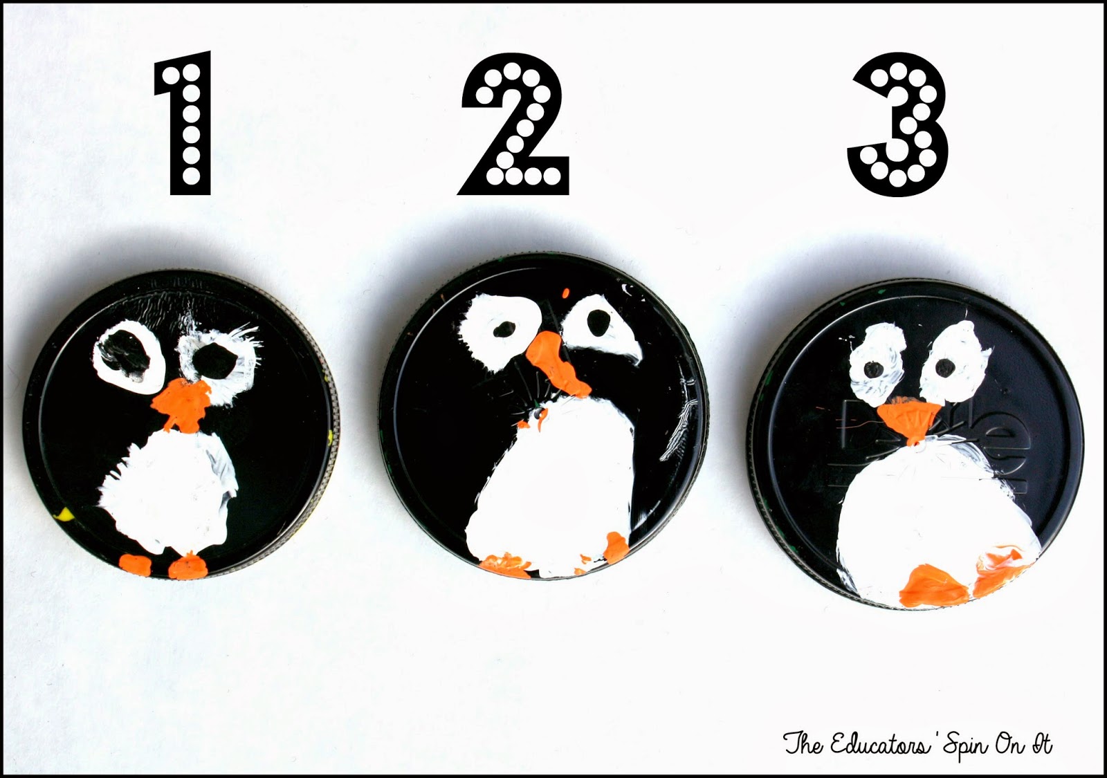 And the Lid Penguin Counters were born. They are as easy to make as 1. 2. 3.