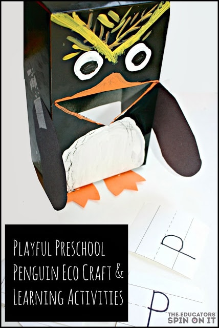 Explore the world of penguins with the fun eco-friendly preschool penguin learning activities. Your child can focus on learning letters and more with this adorable cardboard penguin craft.