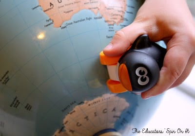 - Take your little penguin and zoom around the globe. Get silly, have them go to where you live and ask, “Do penguins live in ___?”