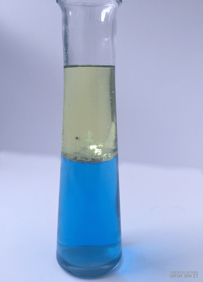10. After you’ve completed the experiment the winter mix of water and oil is fun to observe inside of a Plastic Test Tube too once the lid is placed and you can shake it up.
