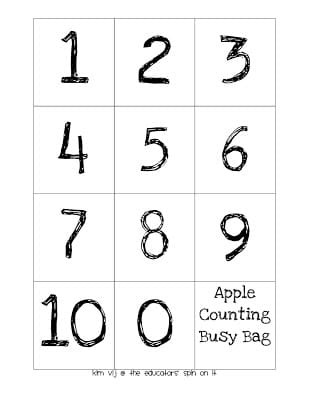 BONUS FUN: You can even make your own apple book after you play the game! Just have your child draw an apple tree, write a number or glue on from the number printable below and then draw apples to make the number.