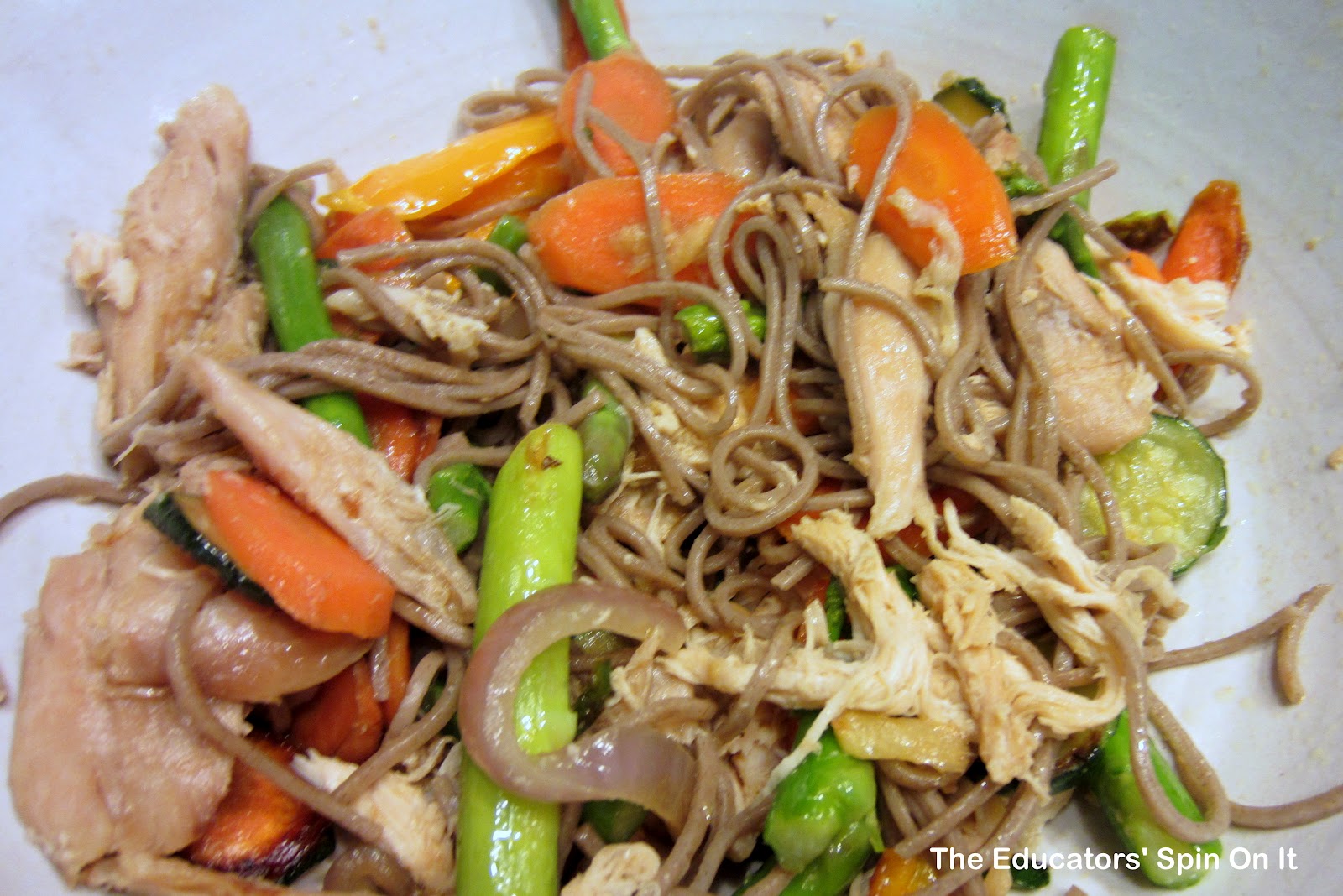 Suspecting that this may be his opinion, we didn’t count on Sushi to be our only Japanese dish. Using Japanese Buckwheat noodles, Soba, we made a ginger and soy sauce chicken and vegetable stir fry with fresh veggies from the garden.