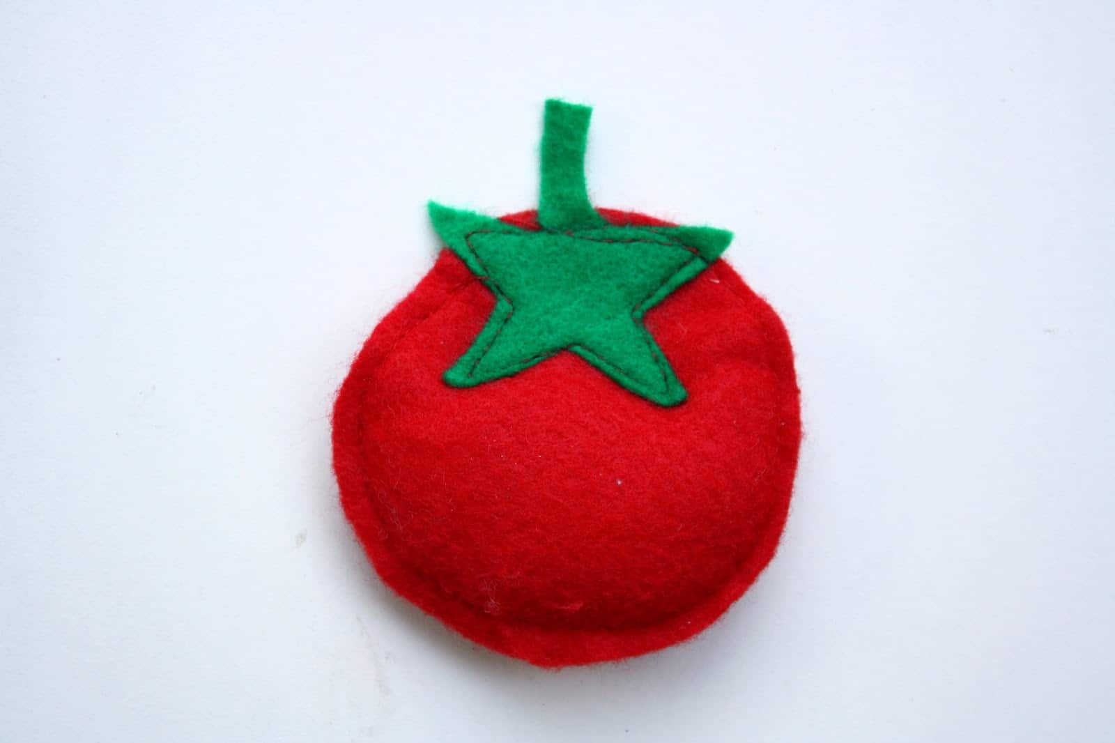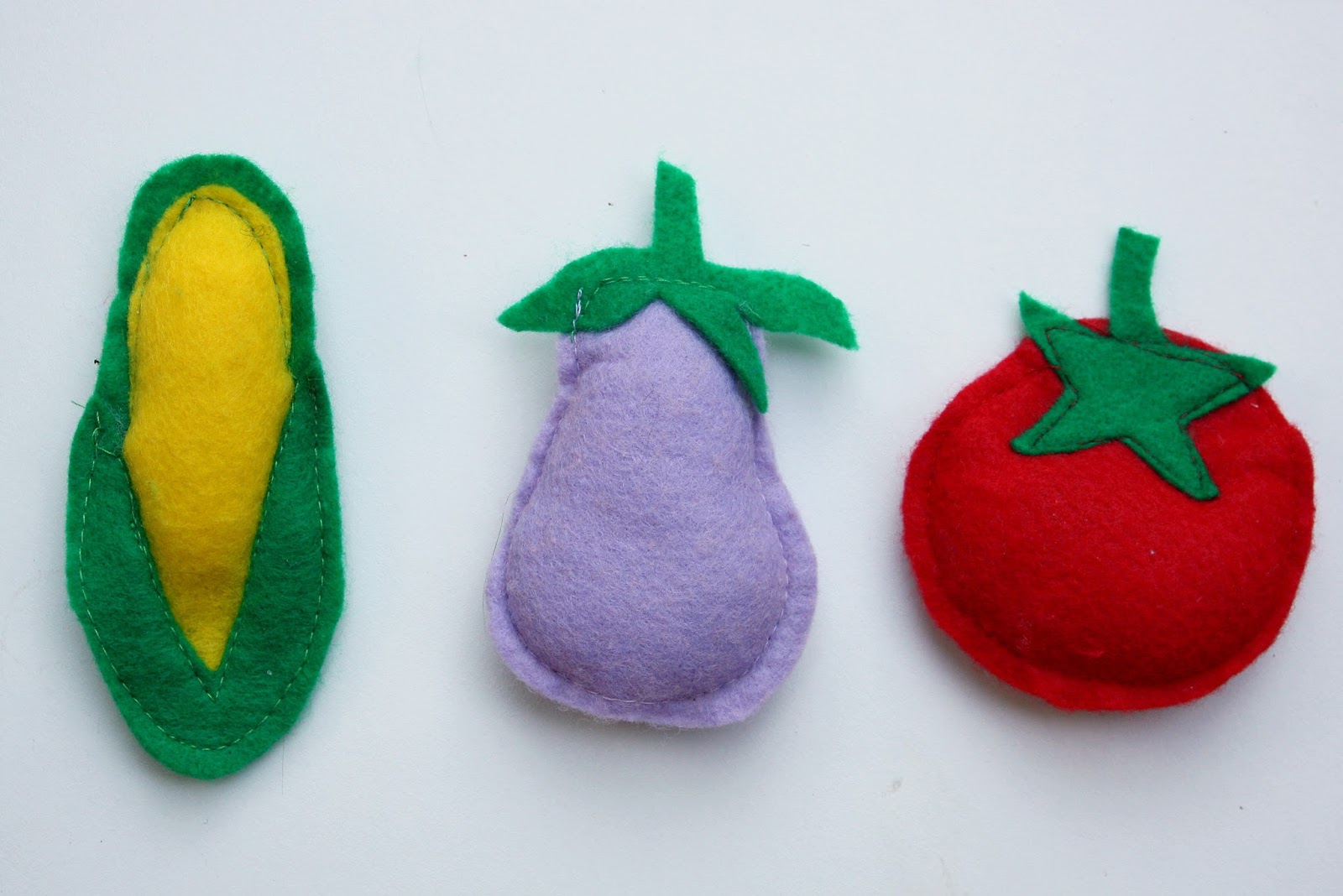 We don’t usually use a tutorial when making felt food, rather make the shape of the vegetable and stitch it together on the outsides with a leaf or stem if needed. See the picture below of the ones that the kids and I have made.
