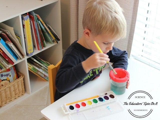 - Have children paint with their colored ice. The children noticed the ice was not melting quickly so they asked, “What can we do to make the ice melt faster?” Some blew on their ice cubes, some tried to break them up, and one asked if they could microwave it (we did – but it does make a mess!)
