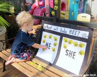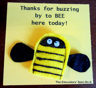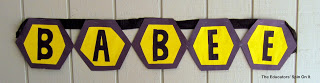 They made posters, felt finger puppet bees for party favors, and even bee balloons ( black streamers, a little construction paper and tape). We tried to make do with the supplies we had on hand and bought the big tag-boards for 30 cents each! I also picked up a couple of items at the $1.00 store to make decorations – like this one!
