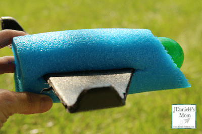 These pool noodle racquets are perfect for summer game time or an outdoor party activity. Save those little mesh bags to get started!